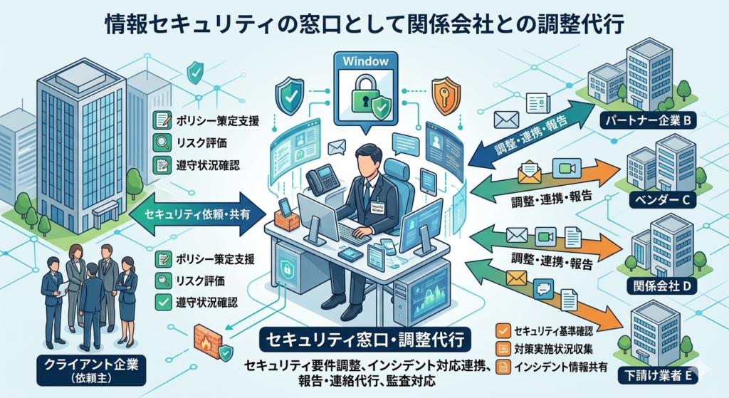 情報セキュリティの窓口として関係会社との調整代行